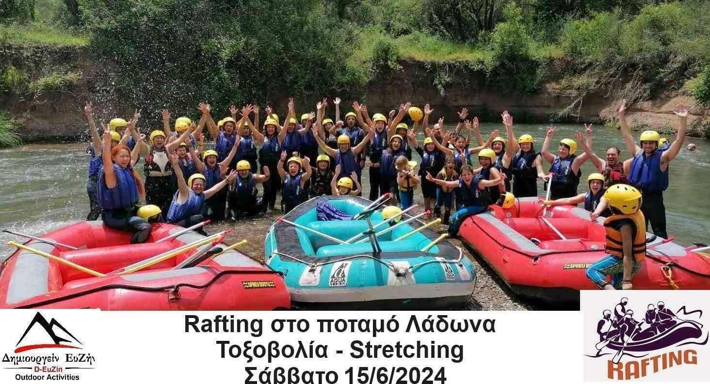 Το Σάββατο 15/6/2024 σας προσκαλούμε να μας ακολουθήσετε σε μια εξόρμηση στη φύση, σε μια δυναμική μονοήμερη εκδρομή με Καλοκαιρινό Rafting – Τοξοβολία στο Λάδωνα ποταμό θα απολαύσουμε την καταπράσινη διαδρομή και πολλά παιχνίδια στο ποτάμι