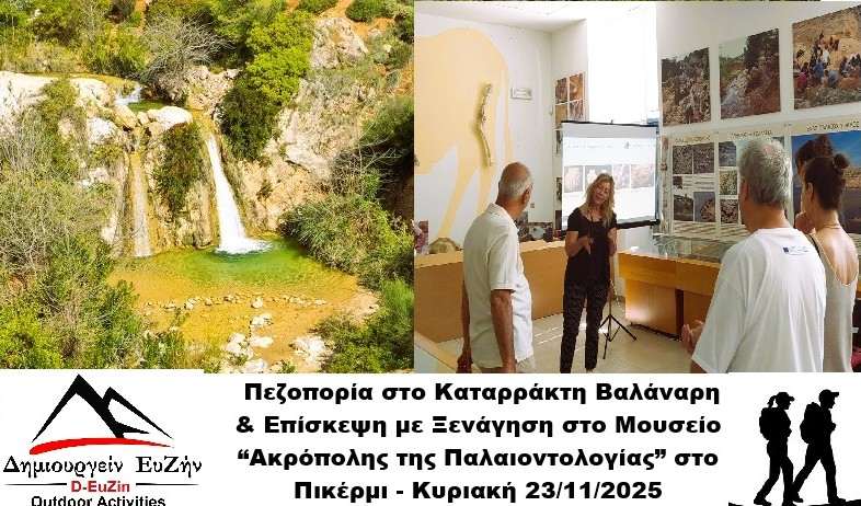23/11/2025 Πεζοπορία στο Καταρράκτη Βαλάναρη & Επίσκεψη με Ξενάγηση στο Μουσείο “Ακρόπολης της Παλαιοντολογίας” στο Πικέρμι