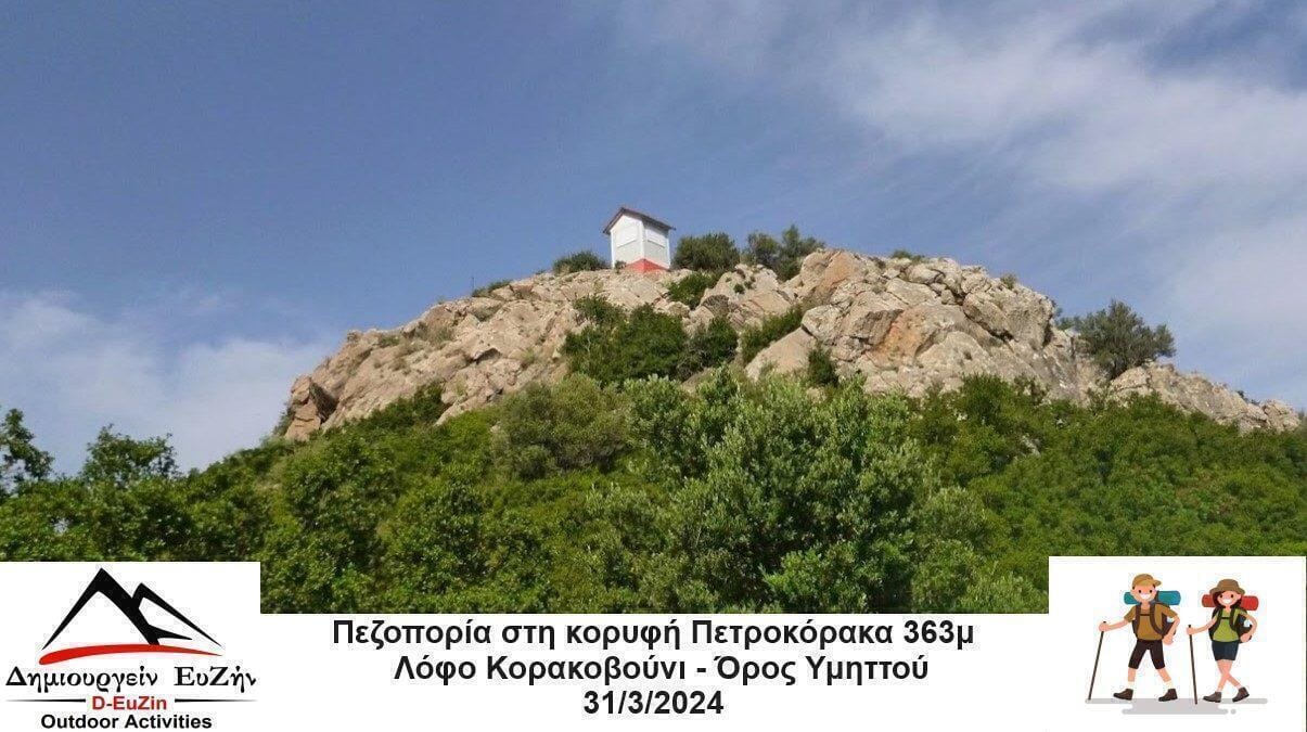 Την Κυριακή 31/3/2024 σας προσκαλούμε σε μια εύκολη πεζοπορία κάνοντας το γύρο στο Λόφο Κορακοβούνι έως στη κορυφή Πετροκόρακα 363μ – Δασικό Πυροφυλάκιο στο Όρος Υμηττού. Το υπέροχο ανάγλυφο του πεδίου θα σας ενθουσιάσει όπως και τα σημεία ενδιαφέροντος όπως το εκκλησάκι της Αγίας Ελεούσας, που έχουμε επιλέξει, να σας αναδείξουμε. Μια υπέροχη κυκλική πεζοπορική πορεία στo δάσος του Παπάγου με πυκνή βλάστηση μέσα από μονοπάτια και δασικούς δρόμους. Στο Λόφο Κορακοβούνι θα απολαύσουμε μοναδική θέα από την κορυφή και τα μονοπάτια του Δάσους του Υμηττού, θα επισκεφτούμε και ξεναγηθούμε για να μάθουμε την ιστορία του “Τρελού” Υμηττού. Πάντα κρύβει μυστικά το βουνό του Υμηττού με τα όμορφα αξιοθέατα.