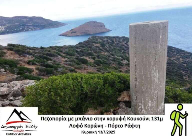 13/7/2025 Πεζοπορία με μπάνιο στη κορυφή Κουρούνι 131μ Λόφος Κορώνη – Πόρτο Ράφτη