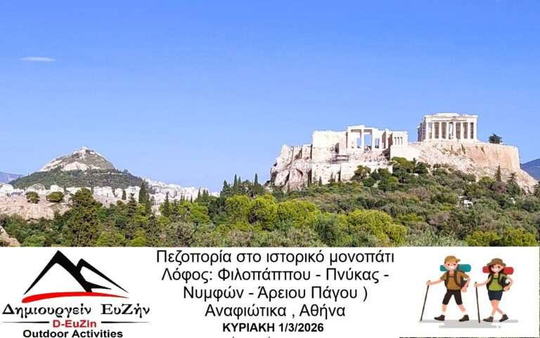 1/3/2026 Πεζοπορία στο ιστορικό μονοπάτι (Λόφος: Φιλοπάππου – Πνύκας – Νυμφών – Άρειου Πάγου ) Αναφιώτικα – Αθήνα (Hike: Kids friendly)