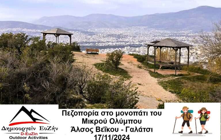 Την Κυριακή 17/11/2024 σας προσκαλούμε να πεζοπορήσουμε στο πιο ψηλό λόφο της Αθήνας στο Άλσος Βεΐκου, θα περπατήσουμε στο μονοπάτι του Μικρού Ολύμπου έως την
