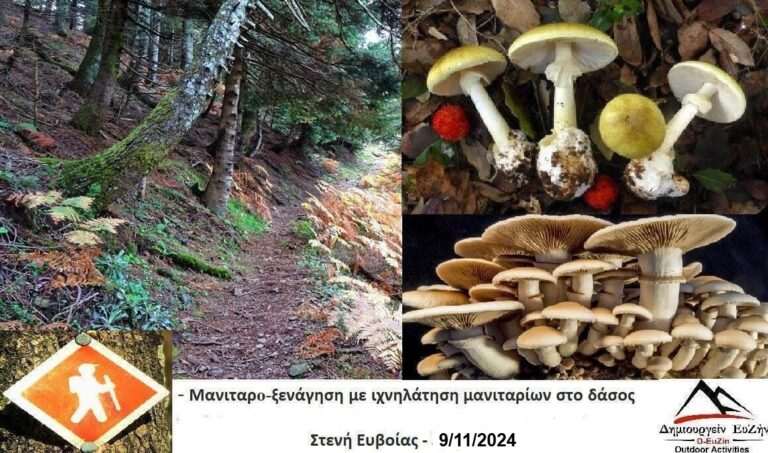 Tο Σάββατο 9/11/2024 σας προσκαλούμε να μας ακολουθήσετε στη θεματική εκδρομή στη Δίρφη της Εύβοιας, για μια μανιταρo-ξενάγηση με βόλτα στο δάσος για να ανακαλύψουμε