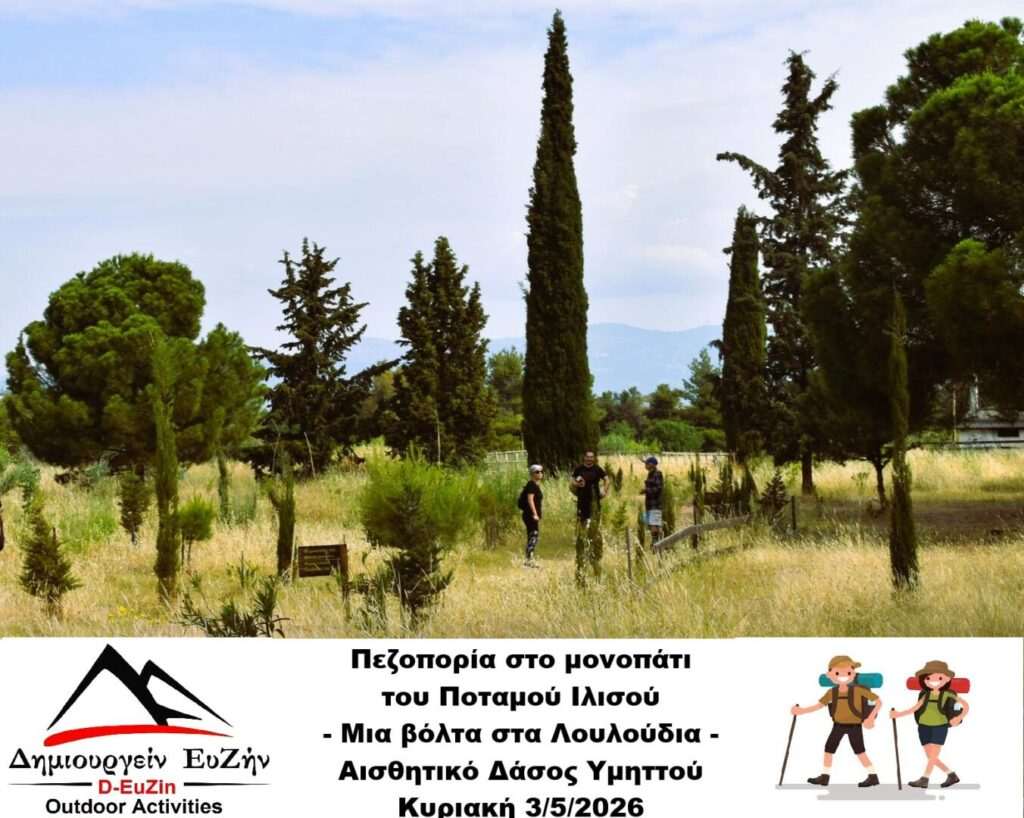 Την Κυριακή 3/5/2026 σας προσκαλούμε να πεζοπορήσουμε στο Μονοπάτι του Ιλισού στο Αισθητικό Δάσος Καισαριανής, να σας αναδείξουμε τα τελευταία ανοιχτά σημεία του ποταμού στο