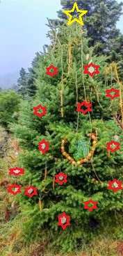 • Με τα στολίδια, που θα βρούμε στη φύση ή που θα φτιάξουμε στο σπίτι θα τα φέρουμε μαζί μας, για να στολίσουμε όλοι με φυσικά στολίδια τη φύση όπως φύλλα, βελανίδια, κουκουνάρια, διάφορα κλαδάκια για το Χριστουγεννιάτικο δέντρο στο βουνό. Τα στολίδια μας θα φροντίσουμε να είναι και νόστιμο φαγητό και λαχταριστά γλυκά και snacks για τα πουλιά και για τα ζώα του δάσους, που τον χειμώνα με το κρύο δυσκολεύονται να βρούνε την τροφή τους. Θα τοποθετήσουμε γιρλάντες από φλούδες φρούτων και θα τα στερεώσουμε από φυσικό σκοινί από: φυσική γιούτα ή σπάγκο κάνναβης. Τα στολίδια που θα φτιάξουμε γιρλάντες από χρωματισμένες ριζο-γκοφρέτες, ζωγραφισμένα μήλα και αχλάδια, πορτοκάλια, μανταρίνια, πιπεριές, καρότα, αποξηραμένα φρούτα κατάλληλα χρώματα ζαχαροπλαστικής, διάφορες μπάλες και μπισκότα ειδικά για τα πουλιά, ξηροί καρποί – κάστανα, μπάρες δημητριακών, ρόδια, σύκα και πολλά άλλα. Για να φτιάξετε τα στολίδια σας, σκεφτείτε και άλλες πολλές ιδέες ή ανατρέξτε και στο you-tube για ακόμα περισσότερες ιδέες !Θα περάσουμε μια πανέμορφη μέρα και θα βγάλουμε φωτογραφίες στο στολισμένο δέντρο μας.