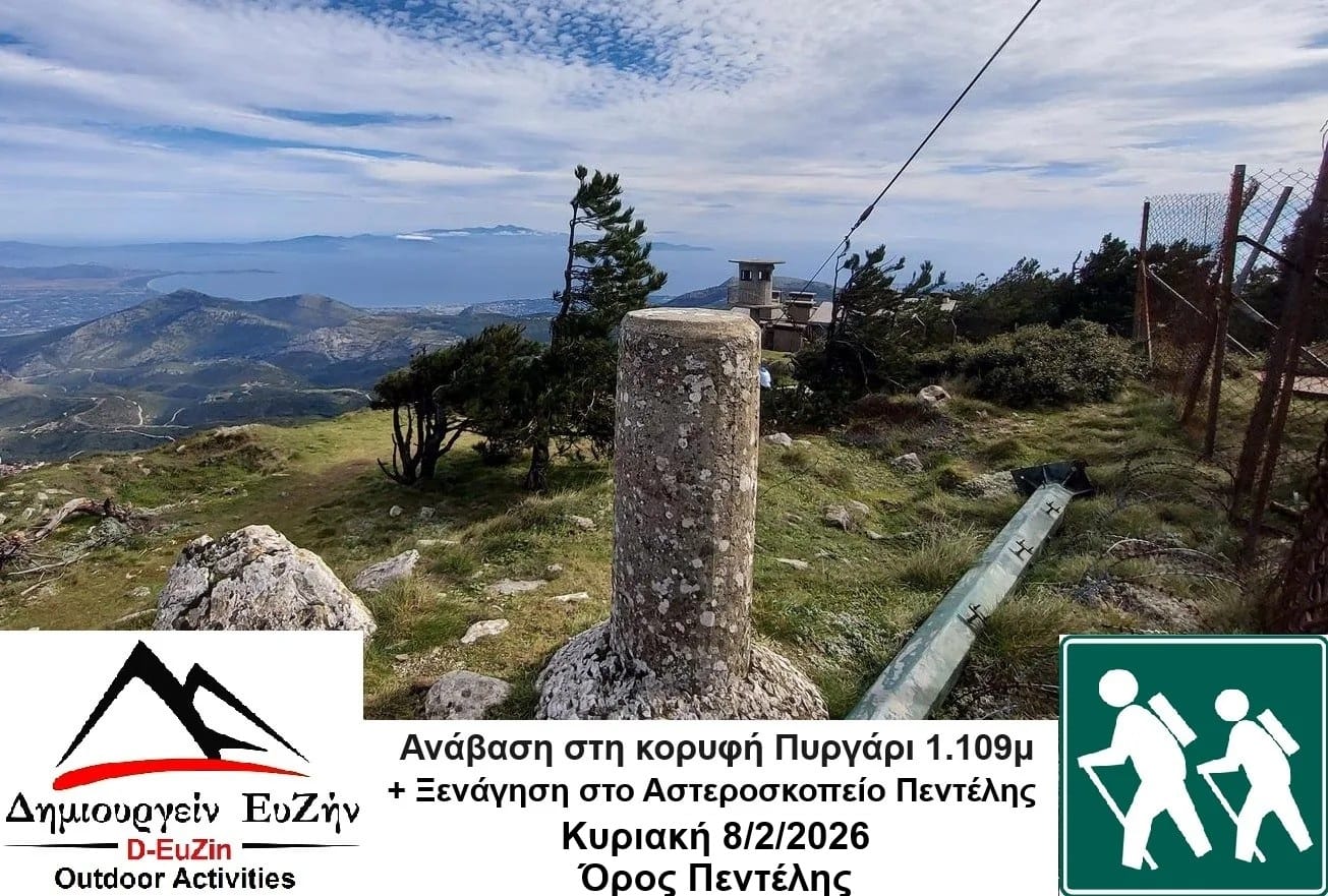 8/2/2026 Πεζοπορία στην κορυφή Πυργάρι 1.109μ + Ξενάγηση στο Αστεροσκοπείο Πεντέλης – Όρος Πεντέλη